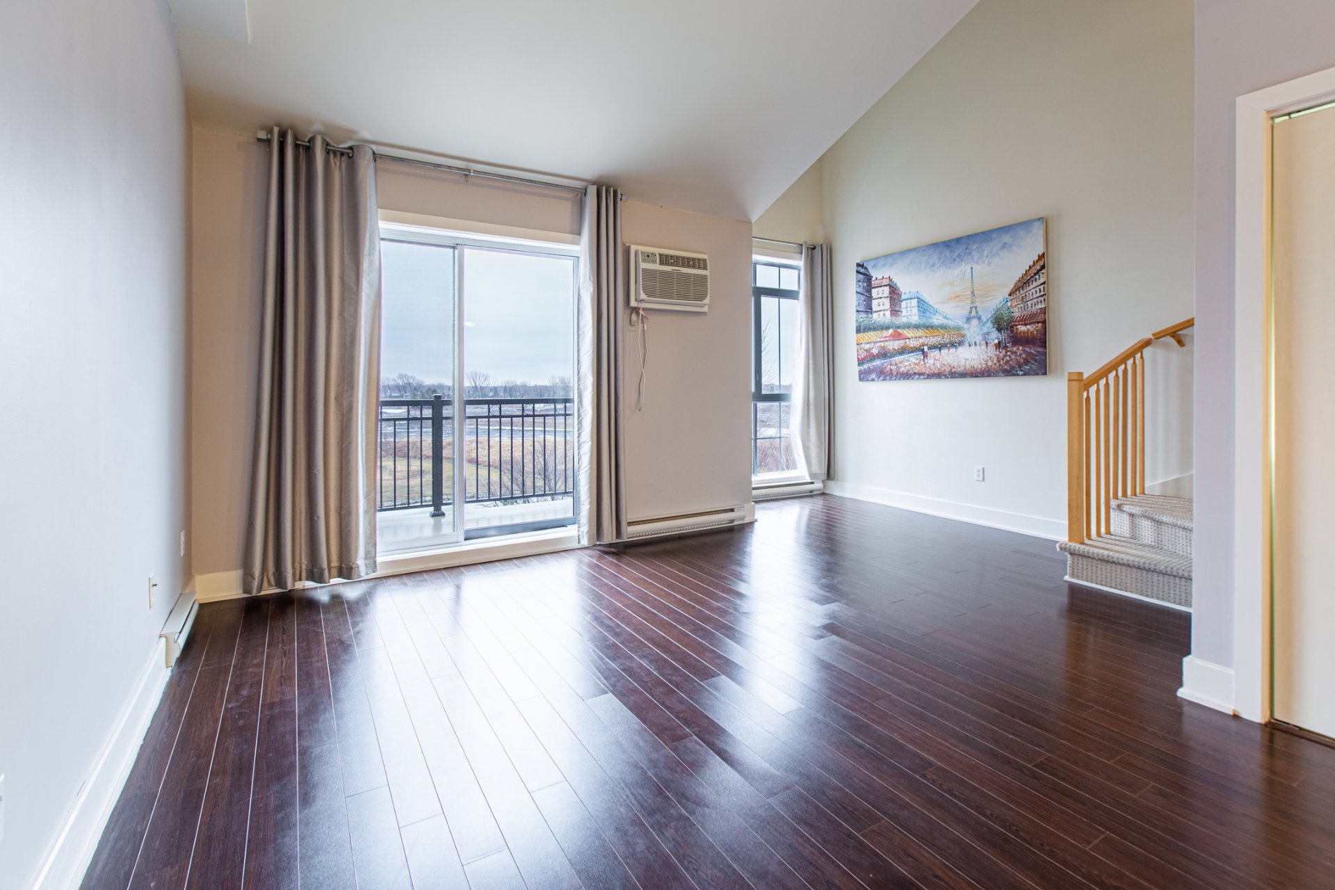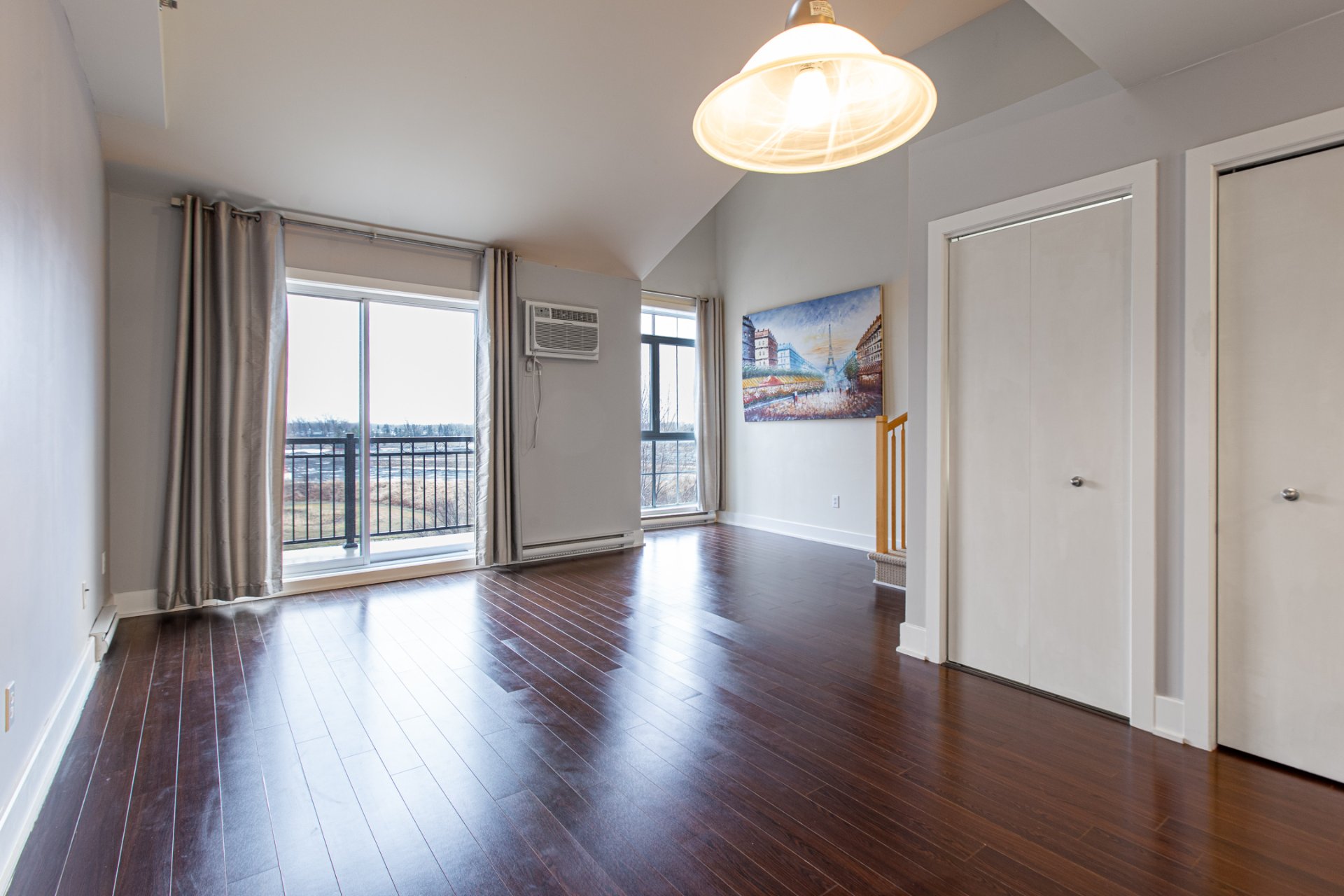 LOFT-STYLE CONDO WITH MEZZANINE AND GREAT VIEWS! Bright and spacious 1-bedroom condo in Les Promenades du Golf featuring cathedral ceilings, abundant natural light, and a private terrace with views of the park and stream. Top-floor mezzanine layout offers added privacy and flexible living space. Ideally located in a quiet area near the La Prairie golf course, just steps from the Terminus La Prairie with direct access to downtown Montreal, 5-10 minutes to the Panama REM station, and close to DIX30, the Marché des jardiniers, Costco, and all services on Taschereau. Easy access to Highway 30 and the Champlain Bridge - a perfect choice!