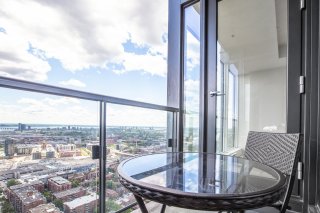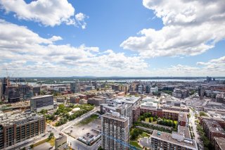 Luxury living in the heart of Montreal at TDC3! This 2-bed, 2-bath condo, 4203, is in the Downtown/Central Business District, with direct indoor access to public transport, subway, train, REM, and the famous Underground City. Adjacent to Centre Bell, steps from Provigo and Metro Supermarket, Bixi Bike Rental, and a 1-min drive to Highway 720. Enjoy unobstructed views, designer kitchen, high-end appliances, washer/dryer, central air, and spa-like bathrooms. TDC3, a 2020 luxury construction, offers a Sky Terrace, pools, gym, BBQ, Jacuzzi, Sauna, Sports Bar, and more. Live in opulence with convenience!